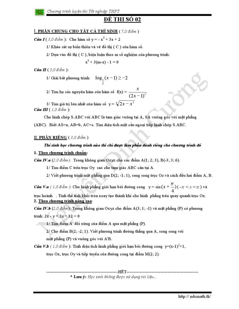 Ngân hàng câu hỏi trắc nghiệm Toán THPT theo chuyên đề full đáp án